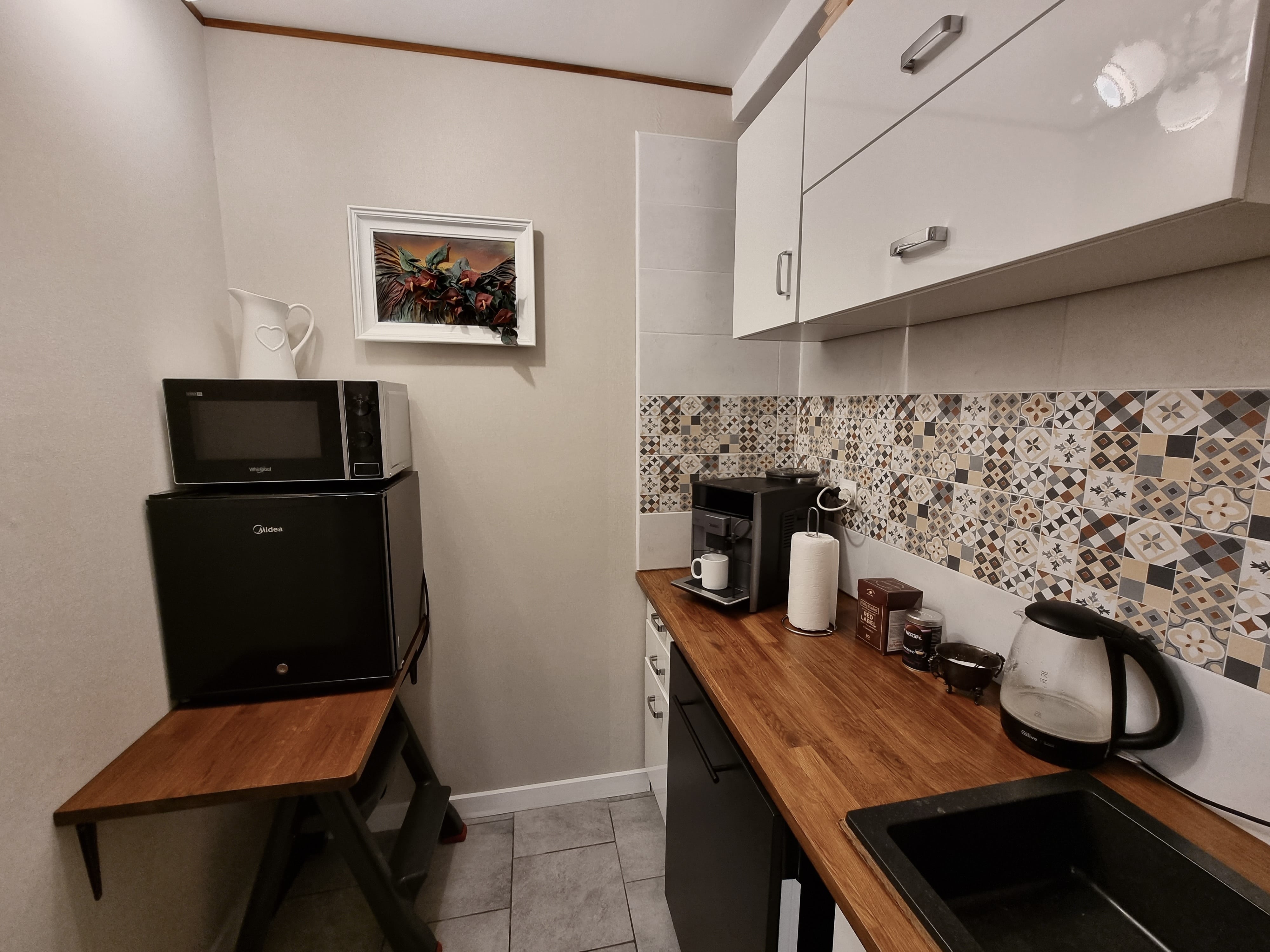 W gabinetach dostępne są wygodne fotele, niezbędne wyposażenie oraz aneks kuchenny z kawą i herbatą.